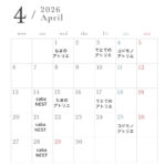 - 4月の予定今年度から新たに始まる「アートフリースクールcabaNEST」は、14日スタートになります。 ⚪︎コドモノアト… 続きを読む: 4月の予定